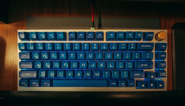 Tactile typing keyboard with bright LED backlighting